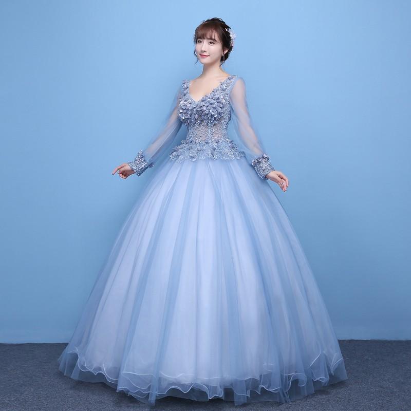 国内配送 ネックレスプレゼント中 カラードレス ロングドレス プリンセスライン ブルー 花嫁 二次会 5号7号9号11号 青系 水色 綺麗 ウエディングドレス 結婚式 ブライダル 演奏会用ドレス ピアノ 発表会 ビーズ 刺繍 正規店仕入れの Litewood Com